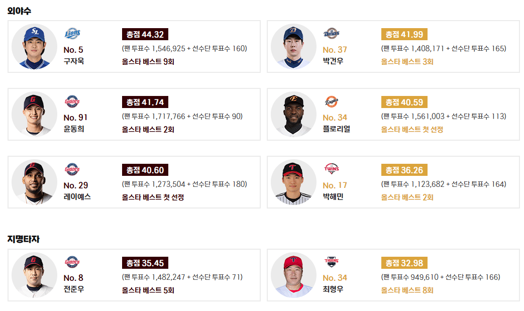 ※ 올스타 베스트 12 선정 기준: 팬 투표(70%) + 팀 투표(30%)